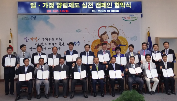 한편, 부산고용노동청은 일家양득 캠페인 홍보를 위해 지난달 6일 사직구장에서 롯데자이언츠와 공동으로 부산시민과 함께 하는 일가양득 캠페인을 개최했으며, 이달 15일에는 부산시 등 유관기관과 함께 부산지역 금년도 참여기업 10개사 및 프로모션 기업 6개사와 '일-가정 양립제도 실천 캠페인 공동 협약'을 체결하고, 일-가정 양립제도의 조기 정착을 위한 지역 차원의 공동 캠페인 전개를 다짐했다.