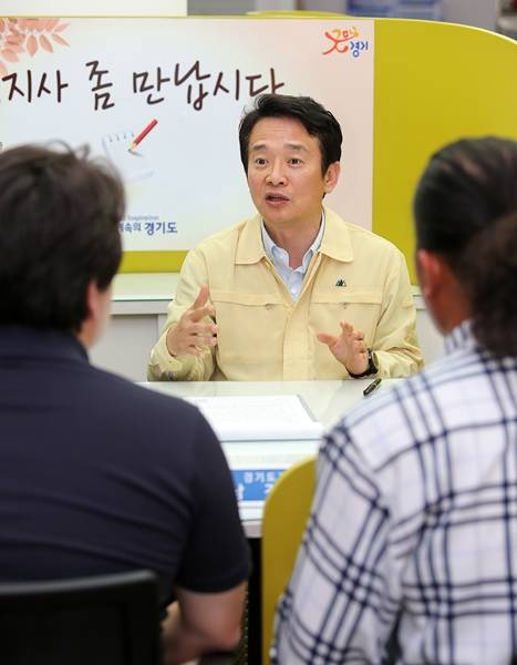 ▲19일 오후 경기도청 365 언제나 민원실에서 남경필 경기도지사가 도민들의 민원을 경청하며 해결방안을 논의하고 있다.(사진=경기도)