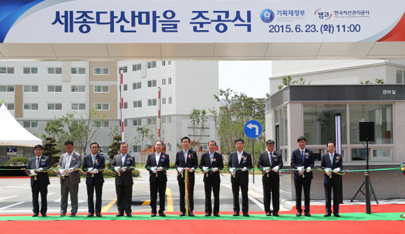 한국자산관리공사(캠코)와 기획재정부는 23일 오전 11시 세종특별자치시 한누리대로 소재 국유지에서 홍영만 캠코 사장과 방문규 기획재정부 차관 등 50여명이 참석한 가운데 공무원통합관사인 '세종다산마을' 준공식을 가졌다.
