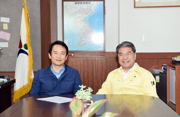 ▲남경필 경기도지사가 23일 경기도교육청을 방문해 이재정 경기도교육감과 협력과제에 대해 심도있는 논의가 이뤄졌다.(사진=경기도교육청)