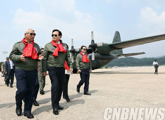 ▲정의화 국회의장은 6.25전쟁 발발 65주년을 이틀 앞둔 23일 오후 수도권 공군부대를 방문해 우리군의 확고한 방위태세를 보고받고 장병들을 격려했다.(사진=국회)