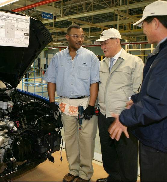 ▲현대차 미국 앨라바마 공장을 방문 중인 정몽구 현대차그룹 회장. (사진=현대차 제공)