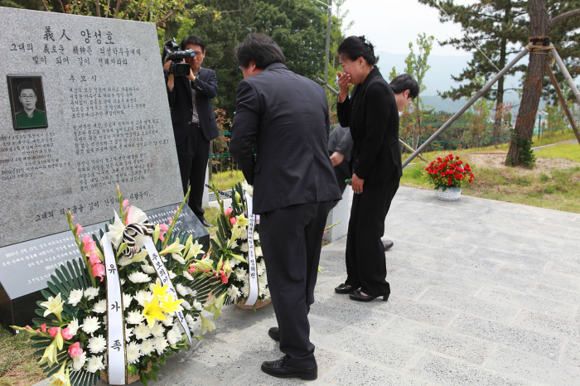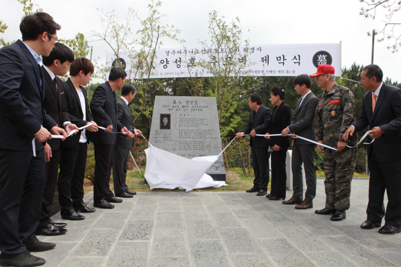 24일 오전 부산외국어대학교 내 추모공원에서는 지난해 2월 경주 마우나리조트 참사 당시 후배들을 구하려다 희생된 의인 故양성호씨의 추모비 제막식이 열렸다. (사진제공=부산외대)