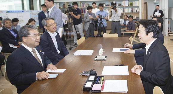 남경필 경기도지사와 이재정 경기도교육감, 박수영 행정1부지사와 김원찬 제1부교육감은 25일 오전 도지사 집무실에서 2+2 협의회를 갖고 원활한 교육협력사업 추진에 힘을 모으자는 데 의견을 같이 했다.