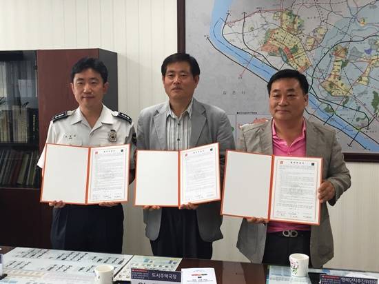 ▲고양시, 고양경찰서, 주민공동체 ‘행복단지추진위원회’가 사회적 환경조성 협력방 협약식 체결