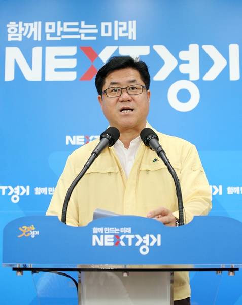 ▲29일 오후 경기도청 브리핑룸에서 이기우 경기도 사회통합부지사가 중동호흡기증후군(MERS) 관련 기자회견을 하고 있다.(사진=경기도)