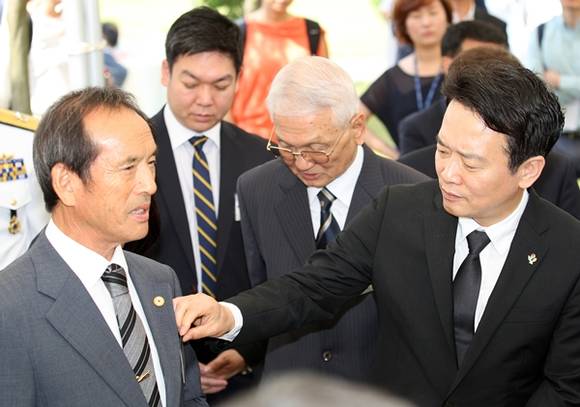 남경필 경기도지사가 29일 오전 해군2함대사령부에서 열린 제2연평해전 13주년 기념식에 참석해 용사들을 기리며 헌화한 뒤 유가족들을 위로했다.