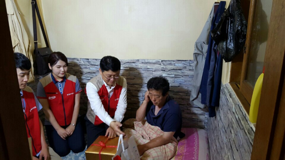 롯데하이마트(대표 이동우)는 29일 오후 부산 동구 쪽방상담소를 찾아 지역 쪽방촌 주민들에게 여름 속옷과 영양제를 전달했다.