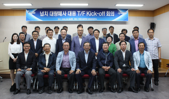 국립수산과학원(원장 강준석)은 어업인현장애로 해결을 위한 첫 번째 프로젝트의 본격적인 착수를 위해 29일 미래양식연구센터(제주도 소재)에서 '넙치 대량폐사 대응 T/F' 발대식을 가졌다. T/F팀은 수과원의 전략양식연구소장을 단장으로, 미래양식연구센터장(팀장), 생물환경 개선반 6명, 현장 운용반 7명, 자문단 24명(수과원, 본부, 지자체, 대학, 연구소, 양식업계 등)으로 구성됐다. (사진제공=국립수과원)