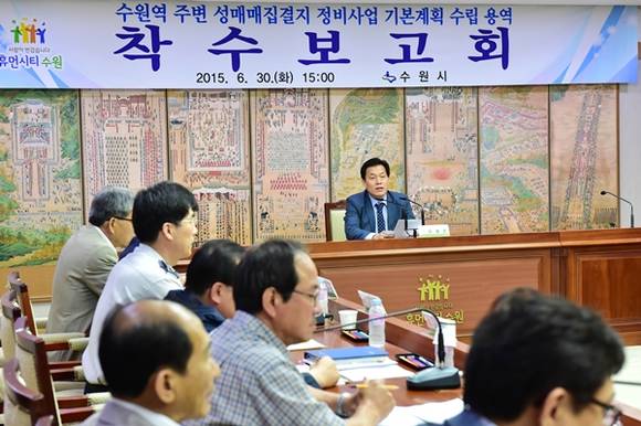 수원시(시장 염태영)는 30일 시청 상황실에서 수원역 성매매 집결지 정비사업 기본계획 수립을 위한 용역 착수보고회를 가졌다. 이날 이재준 시 제2부시장을 비롯해 시의회 의원, 서부경찰서 및 전문가 등이 참석한 가운데 착수보고 발표와 토론을 진행했다.