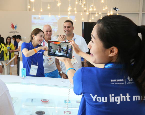▲1일 광주하계유니버시아드 선수촌에 오픈한 '삼성전자 체험관'에서