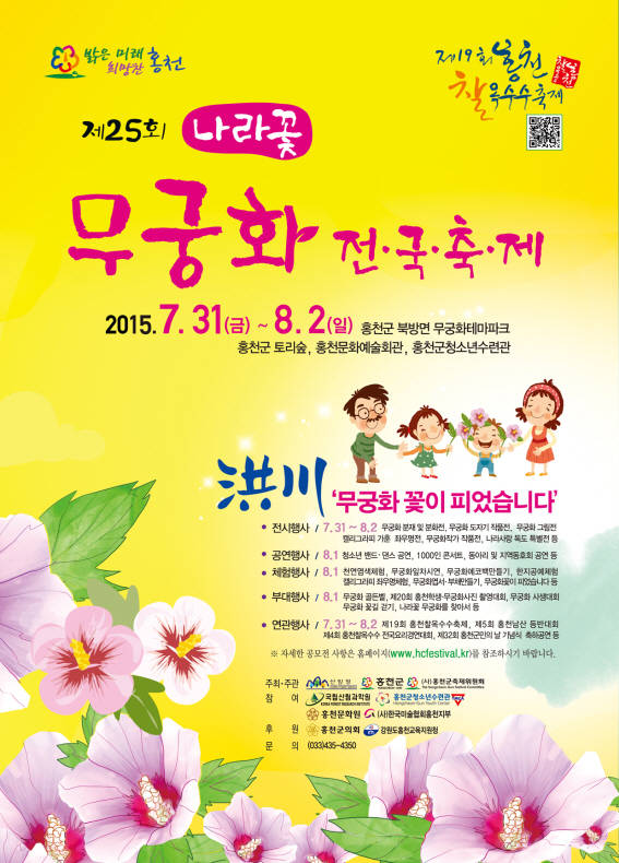 제25회 나라꽃 무궁화 전국축제가 오는 31일부터 8월 2일까지 홍천도시산림공원 토리 숲과 홍천문화예술회관, 북방면 무궁화 테마파크에서 홍천찰옥수수축제와 함께 열린다.