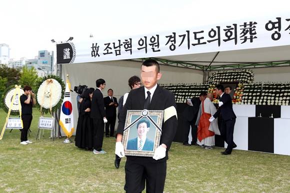 3일 오전 북부청 운동장에서 故 조남혁 경기도의원의 영결식이 경기도의회장(葬)으로 엄수됐다. 이 자리에는 남경필 경기도지사와 강득구 경기도의회 의장을 포함해 경기도의회 의원들이 참석해 고인을 애도했다.