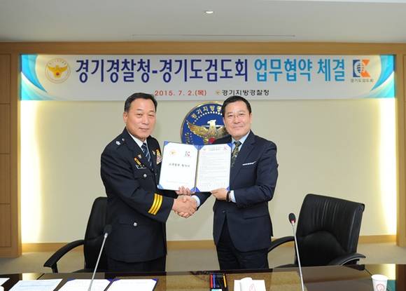 경기지방경찰청(청장 김종양)에서는 지난 2일 경기경찰청 1회의실에서 경기지방경찰청 김상운 1부장과 경기도검도회 김운기 회장 등 10여명이 참석한 가운데 경기청 소속 경찰관에 대한 무도훈련 지원을 위한 업무협약을 체결했다.