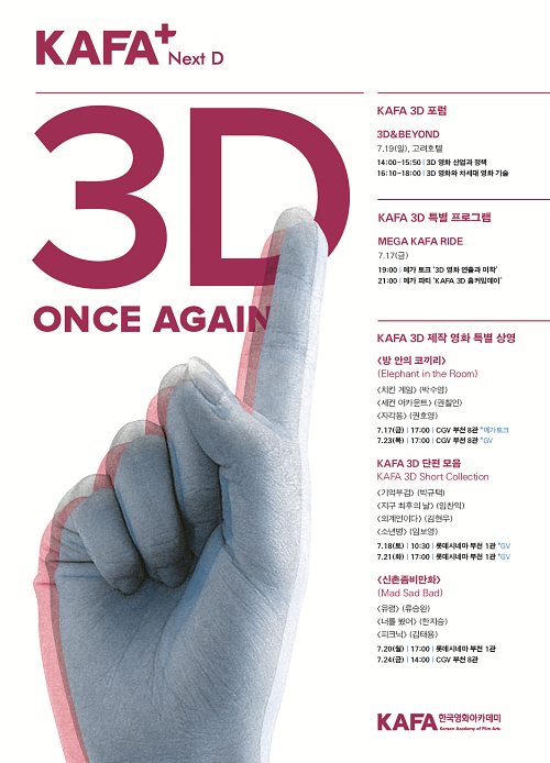 한국영화아카데미 관계자는 "이번 행사에서 관객들에게 한국 3D 영화를 알려 보다 친숙하게 다가갈 뿐만 아니라, 3D 영화 산업의 발전 방안을 각 분야 전문가들과 심도 깊게 논의해 건설적인 이야기를 이끌어낼 수 있을 것으로 기대된다"고 말했다.