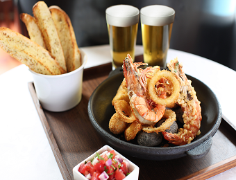 부드러운 거품의 시원한 세계 각국의 맥주와 함께하면 좋을 메뉴를 만날 수 있는 이번 프로모션의 구성으로는 맥주 2잔과 피쉬 앤 칩스(4만8천원, 이하 세금·봉사료 포함), 맥주 2잔과 과일&치즈 플래터(5만5천원)이다.