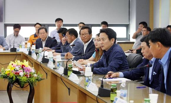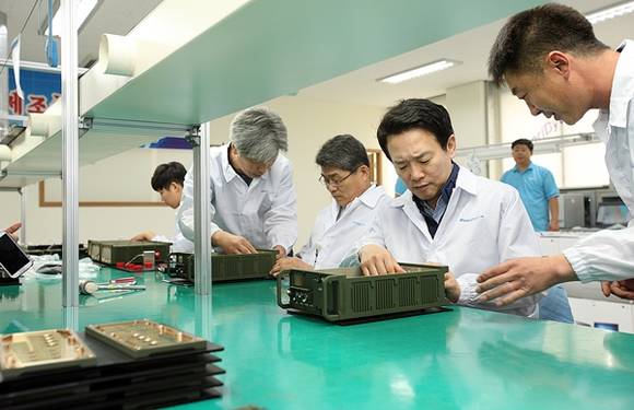 ▲김포 양촌산업단지 내 (주)우리별에서 남경필 경기도지사가 시설을 둘러보고 근로자 및 관계자들과 간담회를 갖고 있다.(사진=경기도)