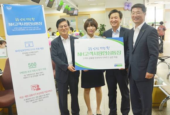 NH고객사랑안심통장은 사회 문제가 되고 있는 금융사기로부터 고객을 보호하기 위해 출시한 상품으로 이 통장 가입고객이 피싱·해킹 등으로 피해를 입은 경우 최고 5백만원까지 보상하는 보험을 무료로 가입해준다. 또한 보안성이 탁월한 NH안심보안카드를 무료로 제공하고 1일 5백만원을 초과하는 출금거래는 영업점 창구에서만 가능하도록 하는 등의 금융안전서비스를 금융권 최초로 도입했다. 이를 통해 농업인과 고령자도 보다 안심하고 금융거래를 할 수 있을 것으로 기대하고 있다.