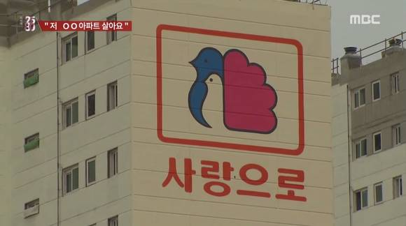 ▲타 아파트와는 확연히 다른 디자인의 부영 ‘사랑으로’ 로고(사진: MBC 캡처)