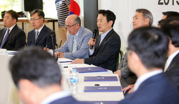 ▲13일 오전 성남 판교 창조경제혁신센터 1층 로비에서 남경필 경기도지사와 가구산업 10대 대기업 및 가구단체 대표 등이 참석한 가운데 가구 대중소기업 간 상생 협약식이 열렸다.(사진=경기도)