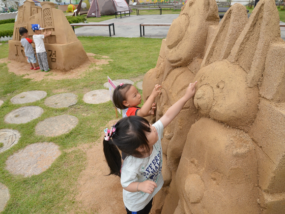본격적인 휴가 시즌이 다가오고 있는 가운데, 롯데백화점 동래점은 가족 단위 방문 고객을 대상으로 한 '모래 조각 전시 이벤트'를 진행해 눈길을 끈다. '모래 조각 전시 이벤트'는 옥상공원에서 이달 말까지 진행한다. (사진제공=롯데백화점 동래점)
