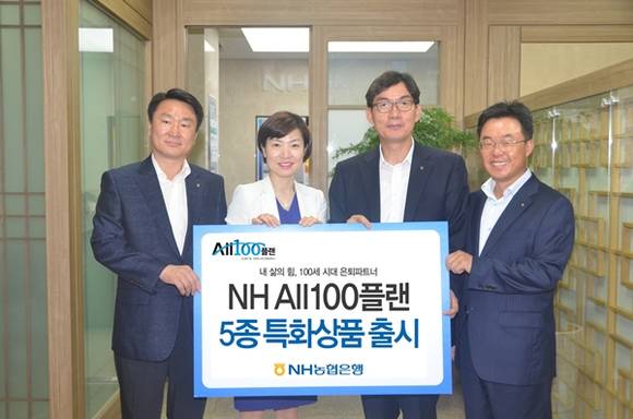 농협은행은 내 삶의 힘, 100세 시대 은퇴파트너라는 은퇴설계 슬로건으로 전지점에서 가입이 가능한 전용패키지 상품인 연금예금, 적금, 연금대출 및 중장년 고객을 위한 신용카드 등 총5종의 상품도 동시 출시하였다. 또한 은퇴설계 제안서인 NH ALL100플랜 리포트를 고객에게 제공하고 은퇴에 관한 비재무 부분을 총괄하는 NH ALL100플랜 서비스도 단계적으로 개발하여 100세 시대를 준비하는 은퇴설계 통합서비스 체계를 구축할 예정이다.