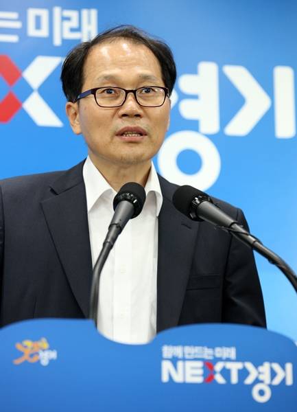 ▲15일 오후 경기도청 브리핑룸에서 황성태 경기도 기획조정실장이 경기도 대학생 인터 1000명 채용. 주요 도정사업에 투입에 관한 기자회견을 하고 있다.(사진=경기도)