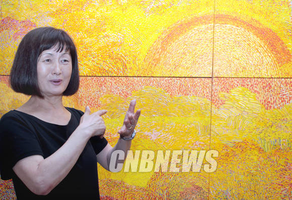 20여 년 전 대서양 바닷가에서 본 일출에 매료돼 지금껏 태양을 작품의 주요 오브제로 삼고 작업을 펼치는 재미작가 최분자(63)의 작품들이다.