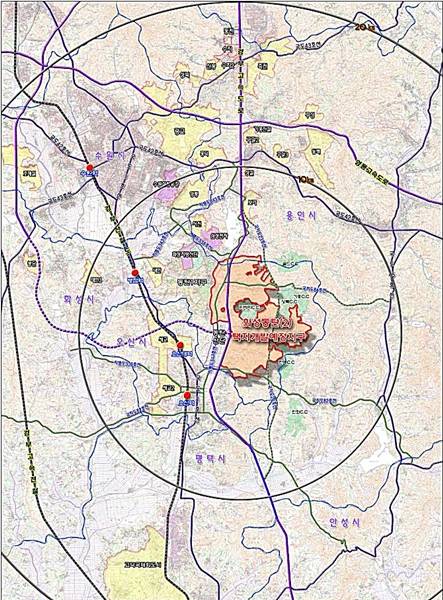 현물토지는 한원CC 인접하여 조망권이 우수할 것으로 예상되고 또한 인접한 신리IC를 통하여 국지도23호선 진·출입이 용이하며 워터프론트 콤플렉스가 인접하여 수변공간 활용을 최대화 할 수 있다.