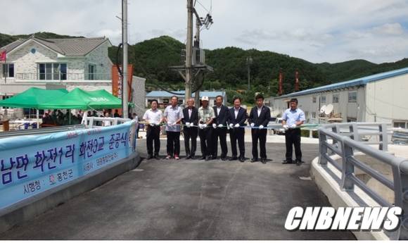 홍천군은 16일 화전1리 다목적 회관 진입교량(이하 화전3교) 준공식이 노승락 홍천군수를 비롯한 기관단체장 및 지역 주민 50여 명이 참석한 가운데 화전1리 다목적회관 앞마당에서 개최됐다고 밝혔다.
