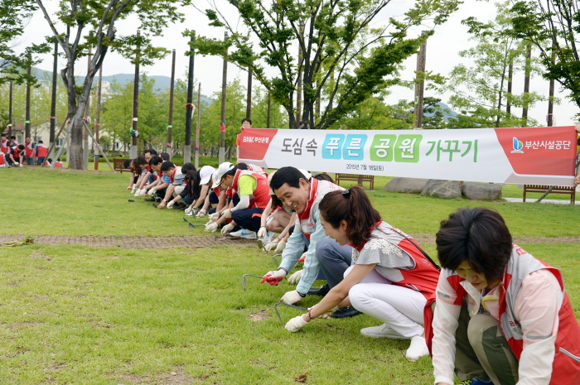 공원 내에는 97종 85만여 그루의 수목이 서식하고 있는데 최근 유해식물 및 잡초들이 많이 늘어나, 이날 부산은행 봉사단이 공원 내 유해식물 및 잡초 제거활동을 1시간 가량 실시했다.