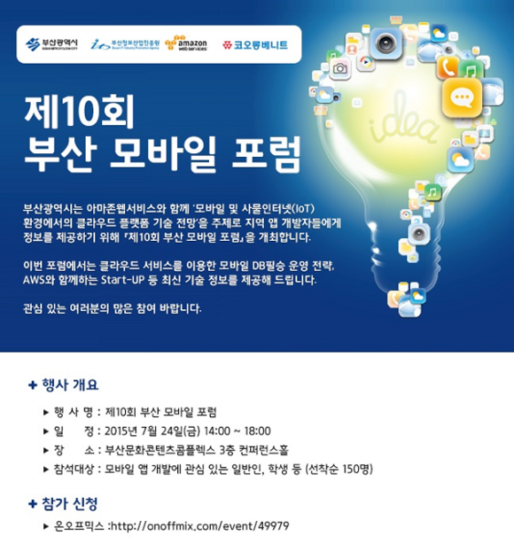 이번 포럼은 부산시가 주최하고 부산정보산업진흥원과 아마존웹서비스가 공동으로 주관한다. 올해 10회째를 맞이한 부산 모바일 포럼은 최신 IT트렌드를 반영한 아젠다를 제시하고 새로운 비즈니스 모델을 공유할 수 있는 장으로 평가되고 있다.