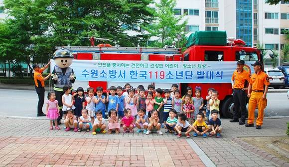 한국119소년단은 어려서부터 안전에 대한 의식과 습관을 기르고 안전을 중시하는 건전하고 건강한 어린이(청소년) 육성을 목표로 창단된 단체로 수원소방서는 총 3개단 89명이 조직되어 있다.