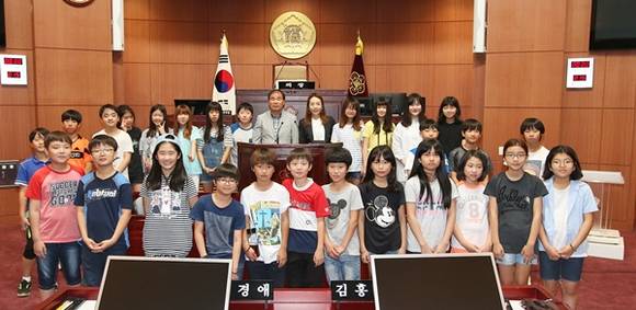 화성시의회에서 운영중인 의회의 기능과 역할, 본회의장 현장 체험을 통해 미래에 대한 꿈을 설계하는 2015년 청소년 의회체험 교실에 20일 석천초등학교(우정읍 소재) 5~6학년 30여명이 참여했다.