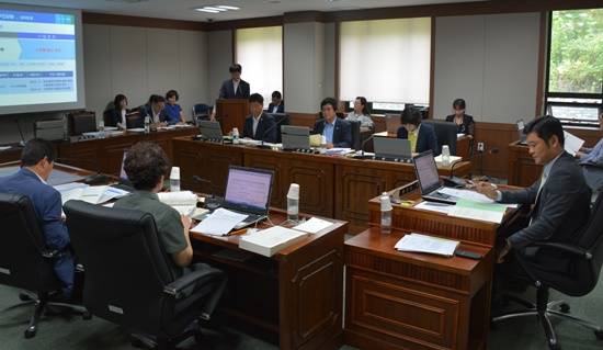 ▲파주시의회 도시산업위원회에서 맑은물사업단에 대해 행정사무감사를 실시하고 있다.(사진= 파주시)