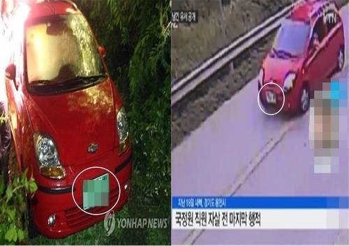 앞서 22일 각종 온라인 커뮤니티에는 사망한 국정원 직원 임모씨(45)가 타고 있던 마티즈 차량과 이동 중 도로 폐쇄회로(CC)TV 화면에 찍힌 모습을 비교한 사진이 올라와 이를 비교한 네티즌들은 마티즈에 부착된 번호판 색상은 녹색으로 구형 번호판인 반면 CCTV에 비친 사진은 흰색 신형 번호판처럼 보이는 점을 지적하며 동일한 차량이 아닐 수 있다는 의혹을 제기하고 있다.