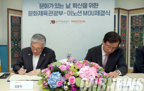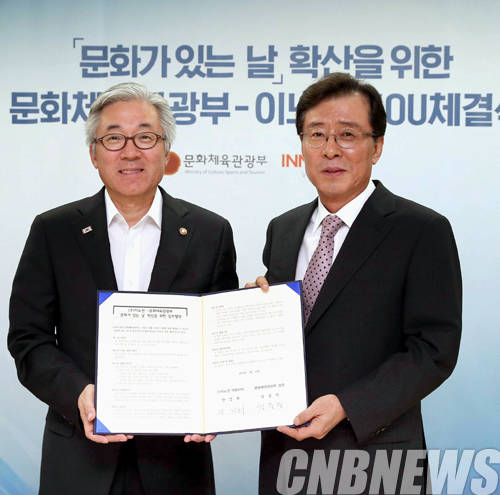 문화체육관광부(장관 김종덕, 이하 문체부)가 ㈜이노션(대표이사 안건희)과 손을 잡고 ‘문화가 있는 날’ 확산에 나선다. 문체부와 ㈜이노션은 7월 22일 오후 서울 서계동 문체부 서울사무소에서 업무협약(MOU)을 체결하고 ‘문화가 있는 날’ 확산을 위해 양 기관이 상호 협력하기로 했다고 밝혔다.