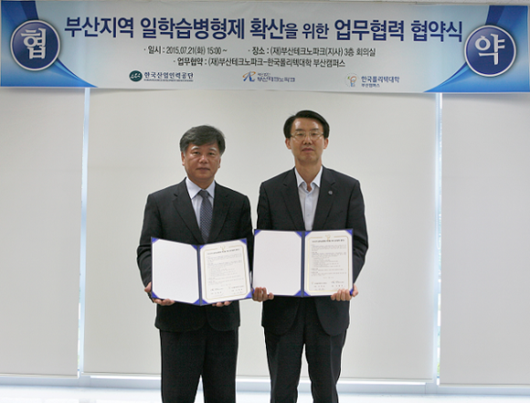 한국폴리텍대학 부산캠퍼스(학장 도재윤)는 21일 부산테크노파크(원장 김태경)와 부산지역 일학습병행제 확산을 위한 업무협약(MOU)을 체결했다.