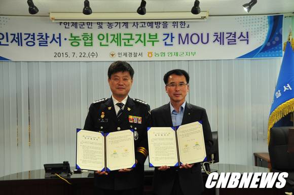 이번 협약으로 인제경찰서장과 인제군지부장은 지역 농업인들의 안전한 교통 환경 조성으로 교통사고 사상자를 줄이는데 적극 협조하기로 했다.