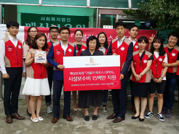 롯데백화점 부산본점(전형식 점장)은 제14호 러블리 하우스로 선정된 '매실 보육원(대표 박진숙)'에 1500만원 상당의 시설 보수 공사비를 지원했다. (사진제공=롯데백화점 부산본점)