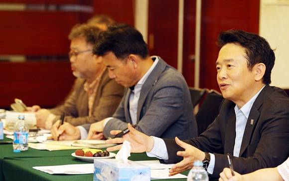 ▲중국 현지시각 26일 오전 경기 한중 R&D센터 조성 협력 및 경제 협력사안을 협의하고 경기도-선전 연구원 간 협력방안 및 징진지 협력방안을 논의하고자 북경을 방문한 남경필 경기도지사가 마자 CAPI(중국투자발전촉진회)회장과 저장성건설투자집단을 만나 면담을 하고 있다.