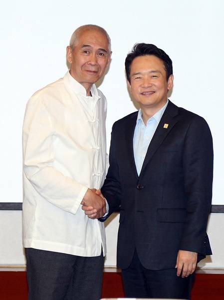▲남경필 경기도지사가 마자 CAPI(중국투자발전촉진회)회장과 면담을 마치고 기념촬영을 하고 있다.(사진=경기도)