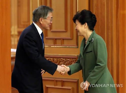 ▲지난 3월 박근혜 대통령이 청와대에서 열린 여야대표 회동에서 문재인 대표와 악수하고 있다.(자료사진=연합뉴스)
