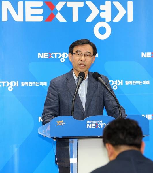▲27일 오전 경기도청 브리핑룸에서 정승희 도시주택실장이 뉴타운 조합 등에도 매몰비용 지원 등의 내용을 브리핑하고 있다.(사진=경기도)