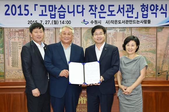 수원시가 27일 오후 시청 상황실에서 사단법인 작은도서관만드는사람들과 2015년도 고맙습니다 작은도서관 조성 협약을 체결했다.