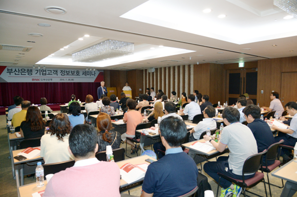 BNK금융그룹(회장 성세환) 부산은행이 28일 오후 본점 23층에서 중소기업 대표 및 회계 실무자등 약 100여명의 기업체 관계자를 초청해 '정보보호 세미나'를 열었다.