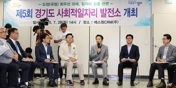 남 지사는 28일 오후 수원 소재 사회적기업인 에스원CRM(주)에서 5번째 사회적일자리 발전소를 개최한 자리에서 “우리나라에 적어도 100만 개에서 150만 개의 사회적일자리가 있어야 우리 사회의 공공 서비스 질이 일본, 독일 등 선진국과 비슷한 수준으로 갈 수 있다”고 강조하고 “경기도정의 가장 상위 목표는 일자리 창출이며 우리 사회의 여러 차이를 메꾸는 역할을 하는 사회적일자리를 통해 이를 이뤄가겠다”고 말했다.
