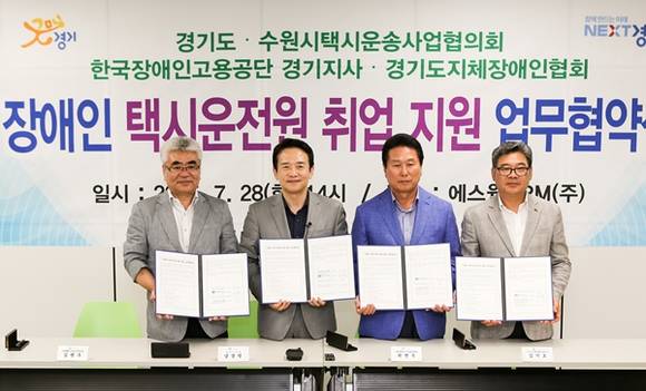 경기도는 이날 수원택시협의회,한국장애인고용공단경기지사, 경기도지체장애인협회와 업무협약을 체결하고 장애인 택시운전원 양성사업을 함께 추진하기로 했다. 이는 장애인에게는 일자리를 택시업계에는 인력을 공급하는 상생형 사업으로 올해는 수원 인근 8개 시‧군 장애인을 대상으로 40명의 장애인 택시운전원을 양성하여 수원지역 택시회사에 취업을 알선한다. 장애인택시용 보조기기와 초기 사납금 일부도 지원한다.