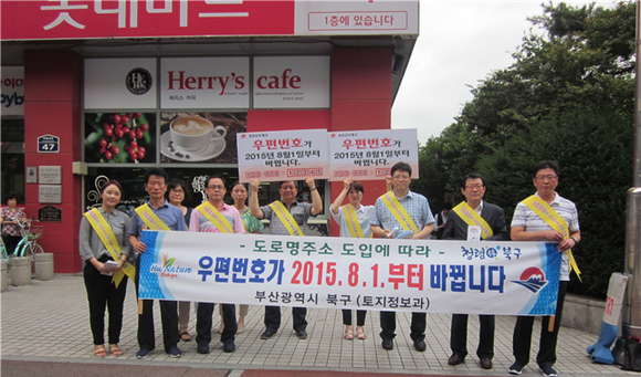 부산 북구청(구청장 황재관)과 북부산우체국(국장 이영오)은 지난 24일 롯데마트 화명점 앞에서 오는 8월 1일부터 사용되는 새 우편번호를 홍보하고자 합동 캠페인을 개최했다. (사진제공=부산 북구)