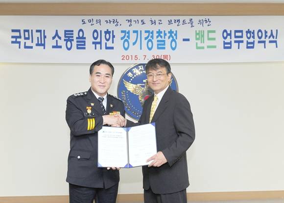 경기지방경찰청(청장 김종양)은 30일 경기지방경찰청과 지역주민 간의 대표 소통창구로서 그룹형 SNS 밴드를 활용하기 위해 캠프모바일(공동대표 박종만․이람)과 업무협약을 체결했다.